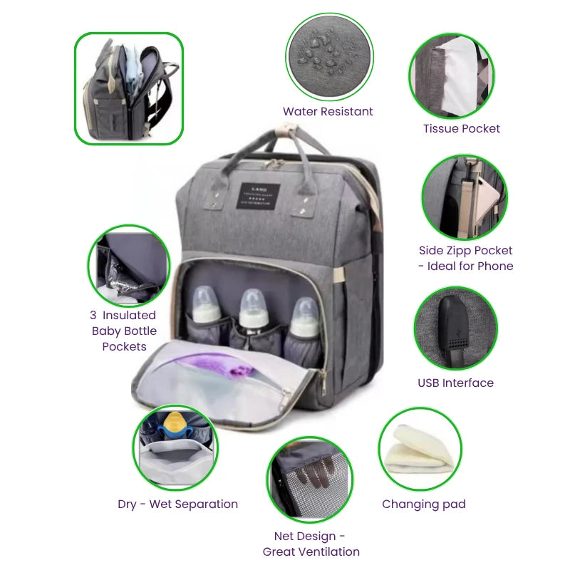 Baby Diaper Bag with Crib